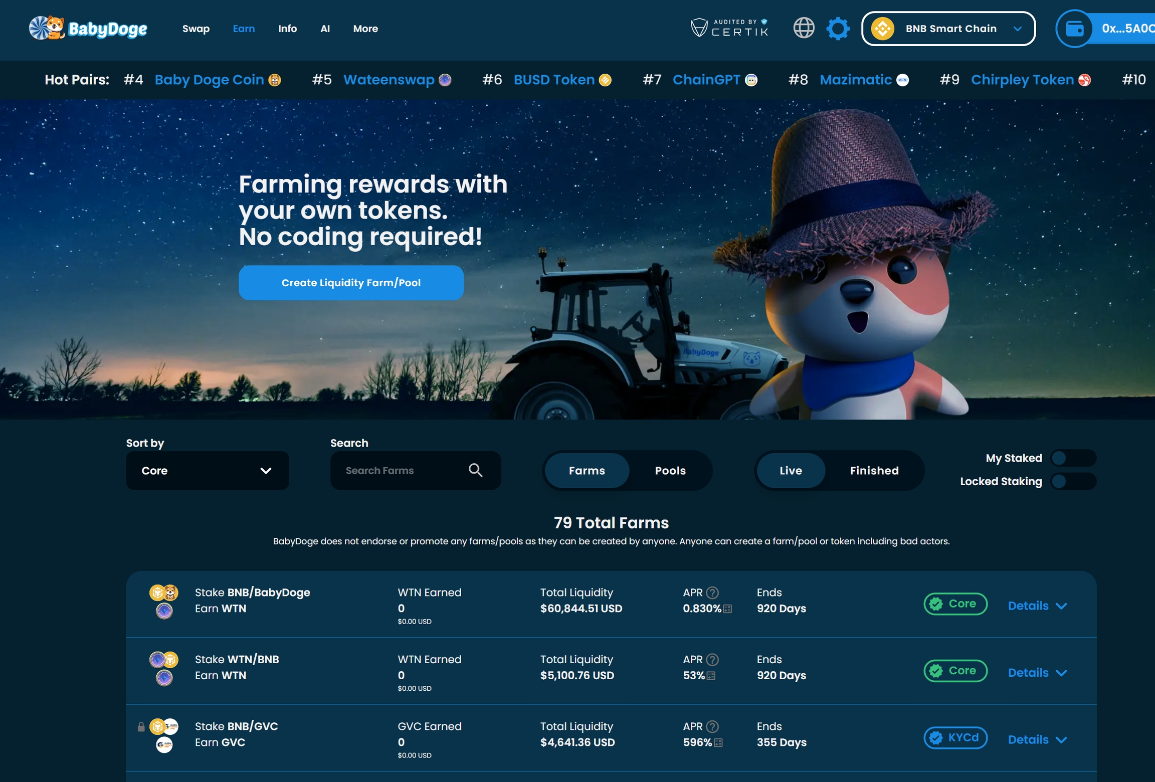The Farms as a Service allows anyone to create a liquidity pool and give rewards with zero technical understanding. Take your token offering to the next step by getting verified by BabyDoge