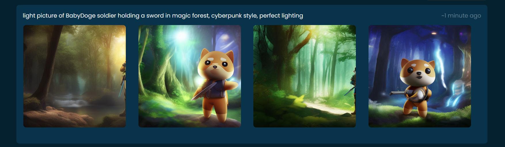 * Classic BabyDoge: this model generates images with the original BabyDoge character in them.