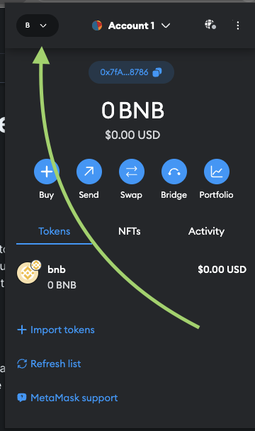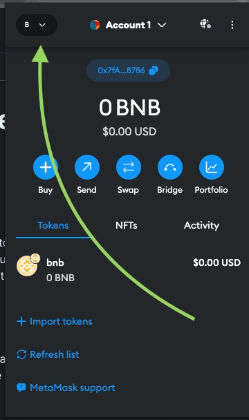 MetaMask is a popular Ethereum wallet and browser extension that allows users to manage their Ethereum accounts and interact with decentralized applications (dApps). We will use Metamask in this guide. To access the Multichain feature and add additional chains to your MetaMask wallet, follow the steps below:
