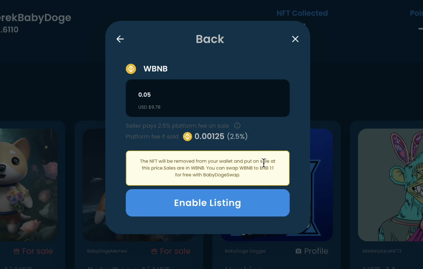 Users can list their NFTs from places in the UI; their profile and the NFT's page